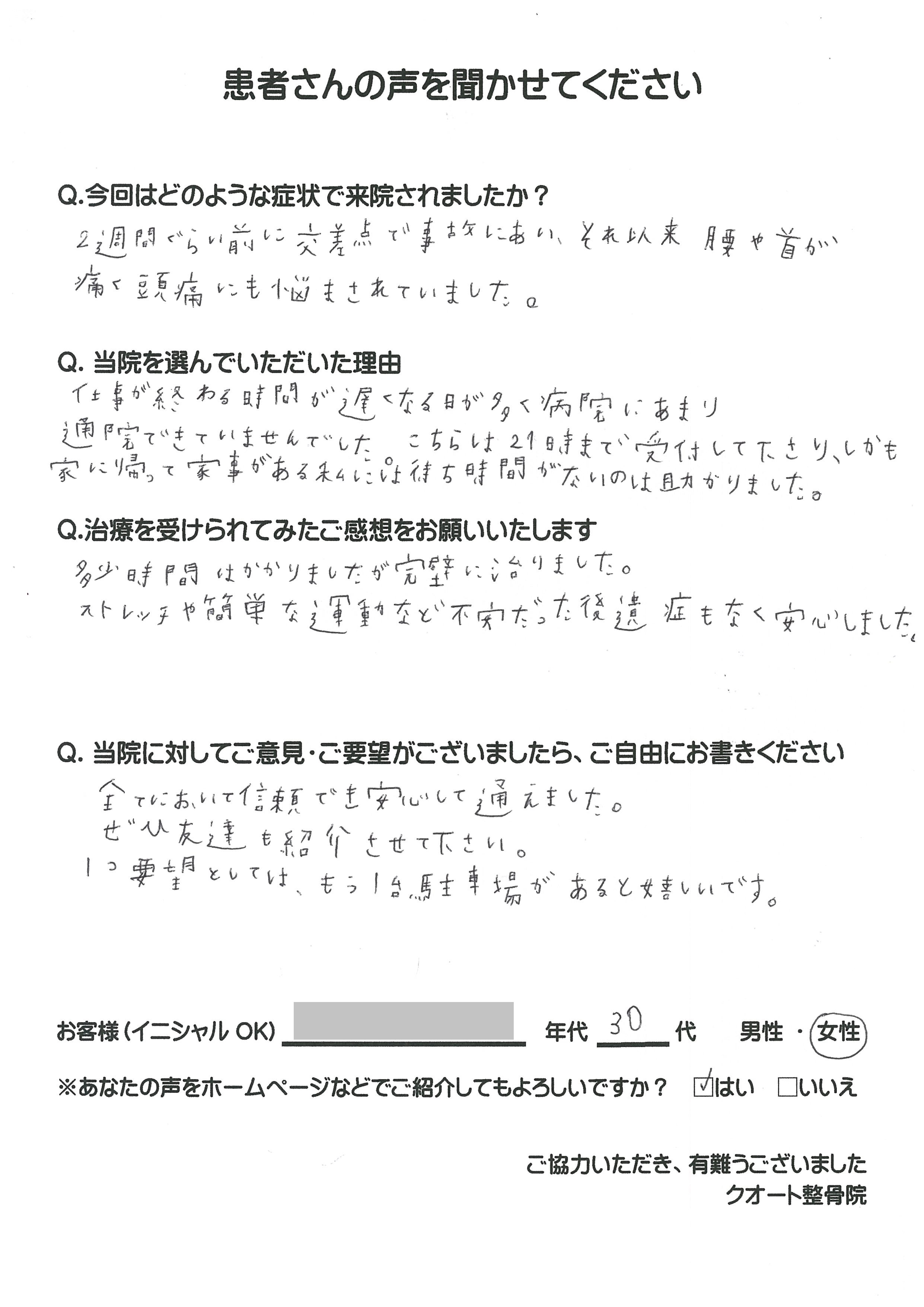 A・Aさん 30代 女性 院内アンケートより 2019/01/14