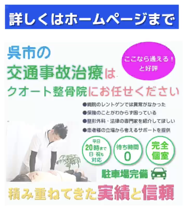 呉で交通事故によるケガでお困りの方へ